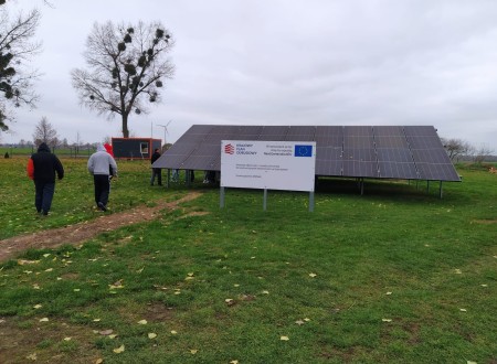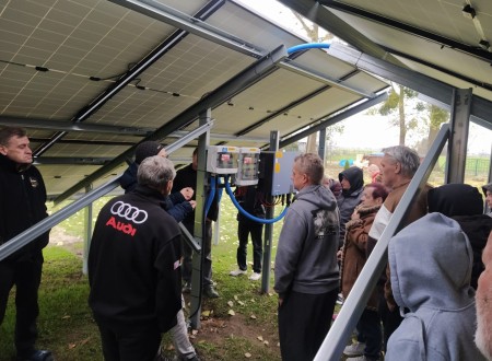 Uczestnicy obejrzeli również instalację fotowoltaiczną, która powstała przy schronisku i dowiedzieli się, jak należy ją konserwować.